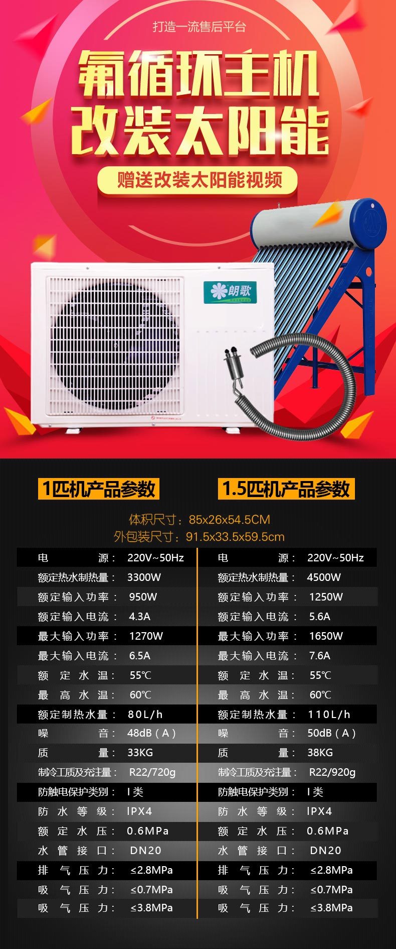 描述:為什么選擇我們? ① 一級能效,有多少家能做到? ② 松下壓縮機,100%原裝正品,噪音低 ③ 太陽能改裝專用機 ④ 氟循環(huán)主機更換用機 ⑤ 節(jié)能省電,快速加熱,節(jié)能75% 3匹一體機